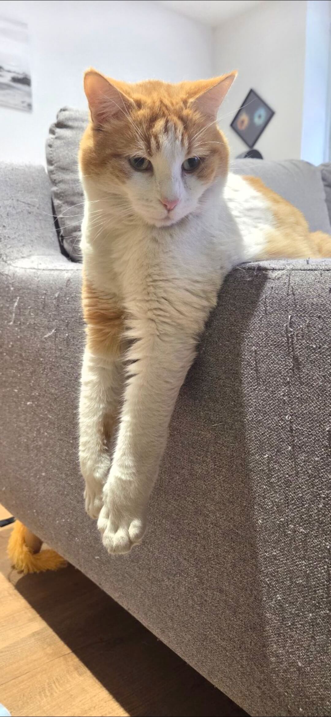 chat mâle depuis le 10 décembre 2025 environ. Il est castré. Il est très affectueux mais un peu craintif.
