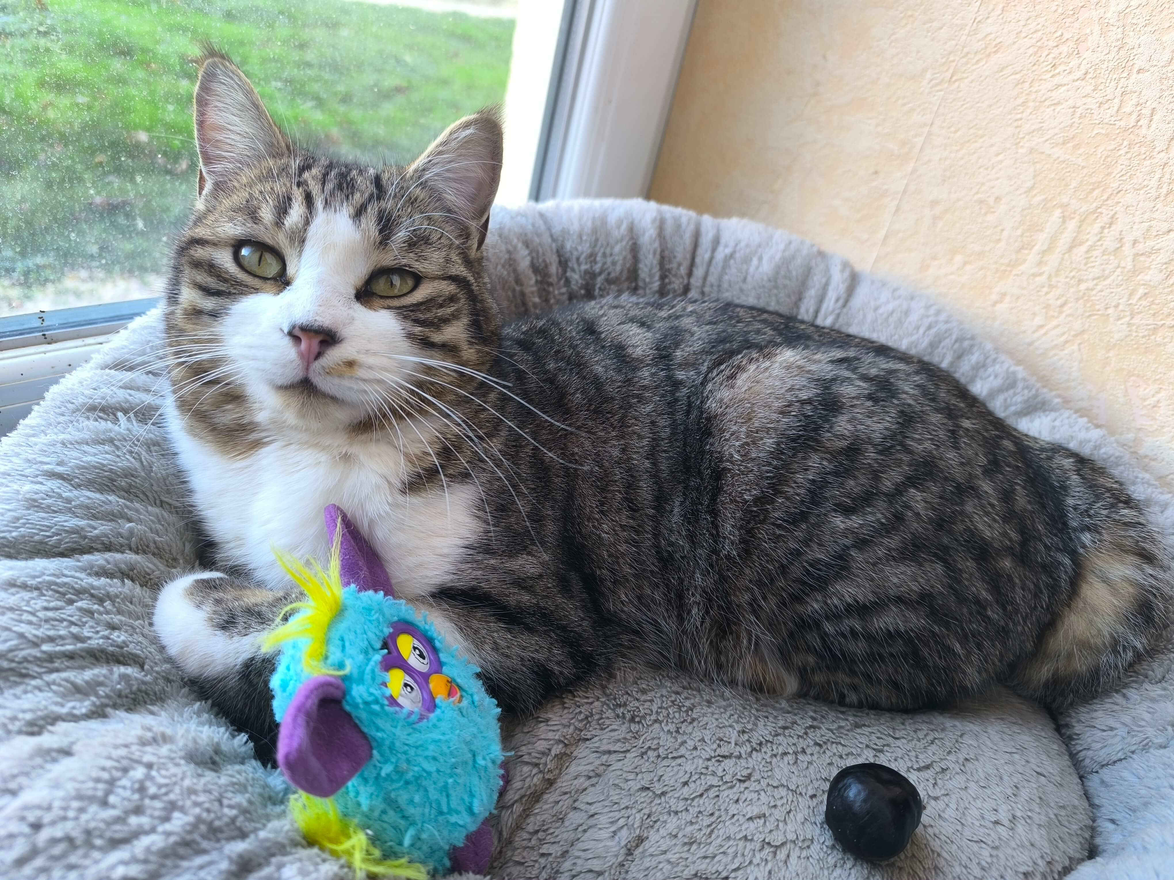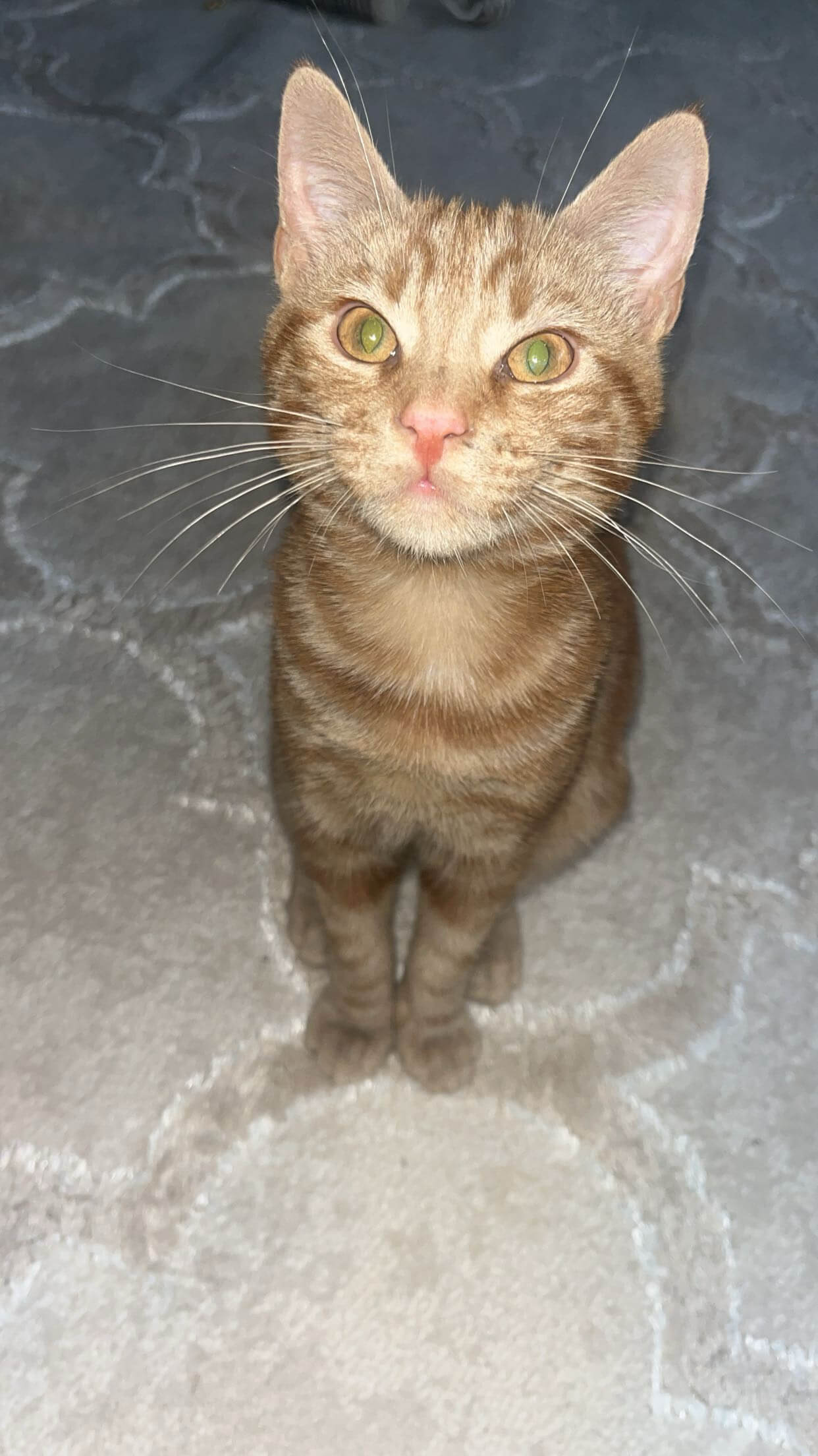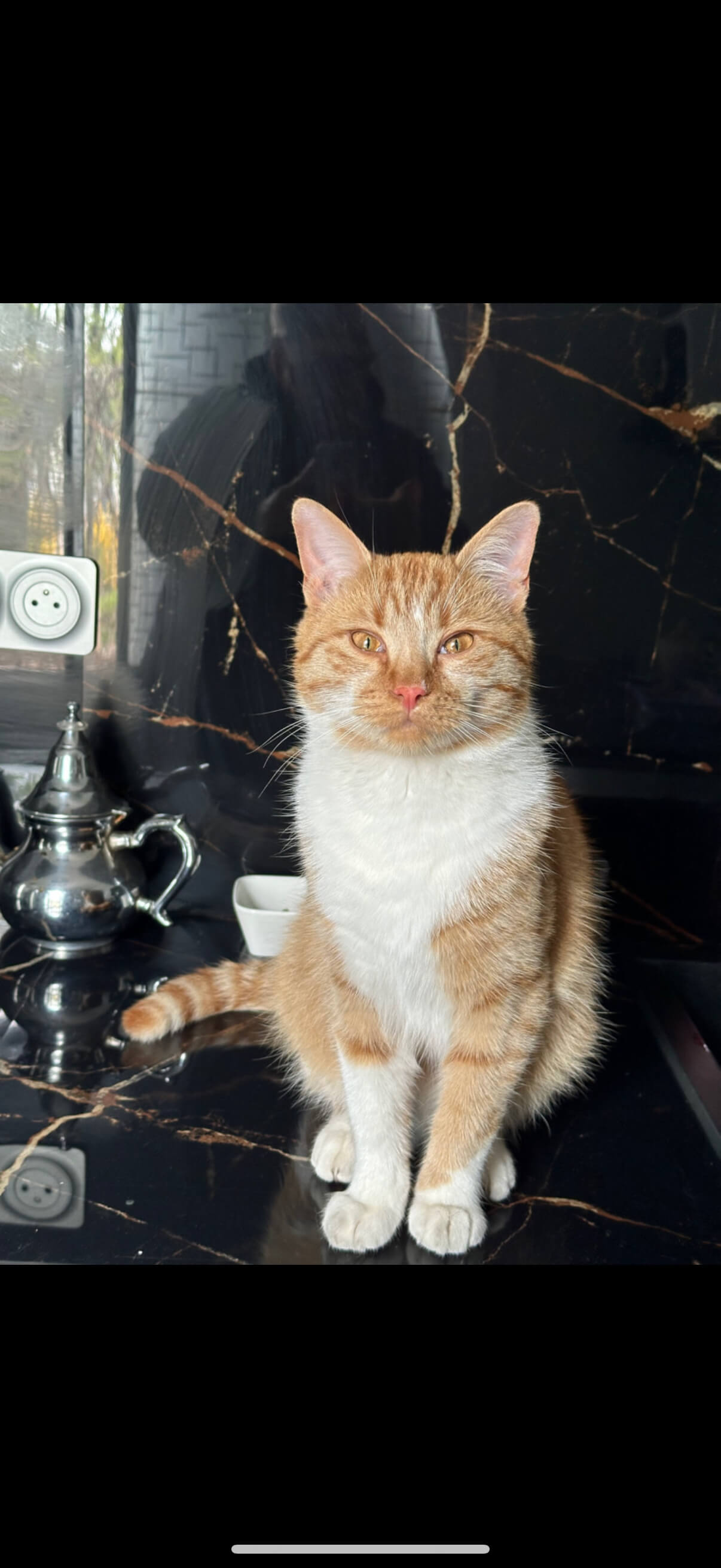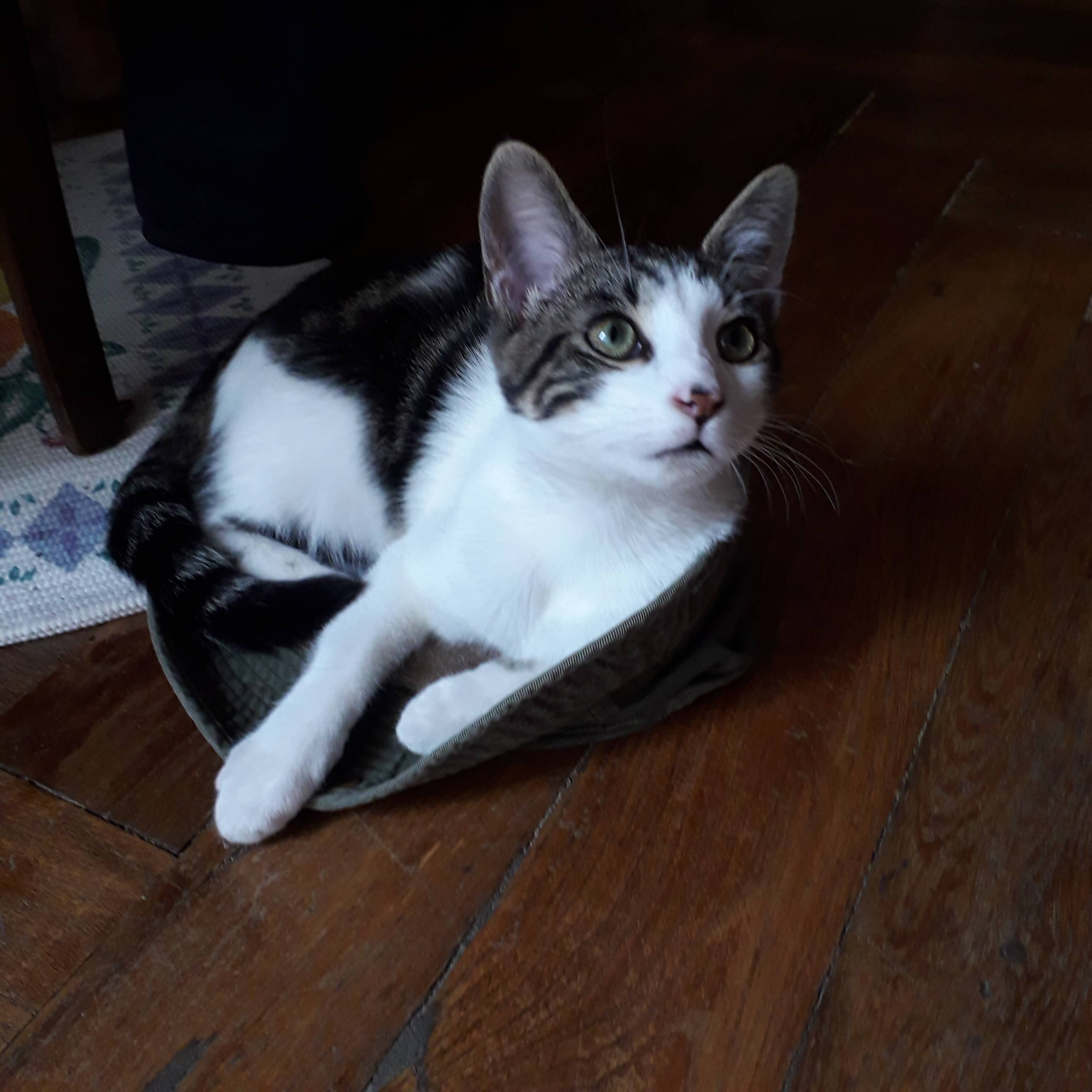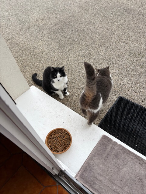 chat mâle depuis le 10 décembre 2025 environ. Il est castré. Il est très affectueux mais un peu craintif.